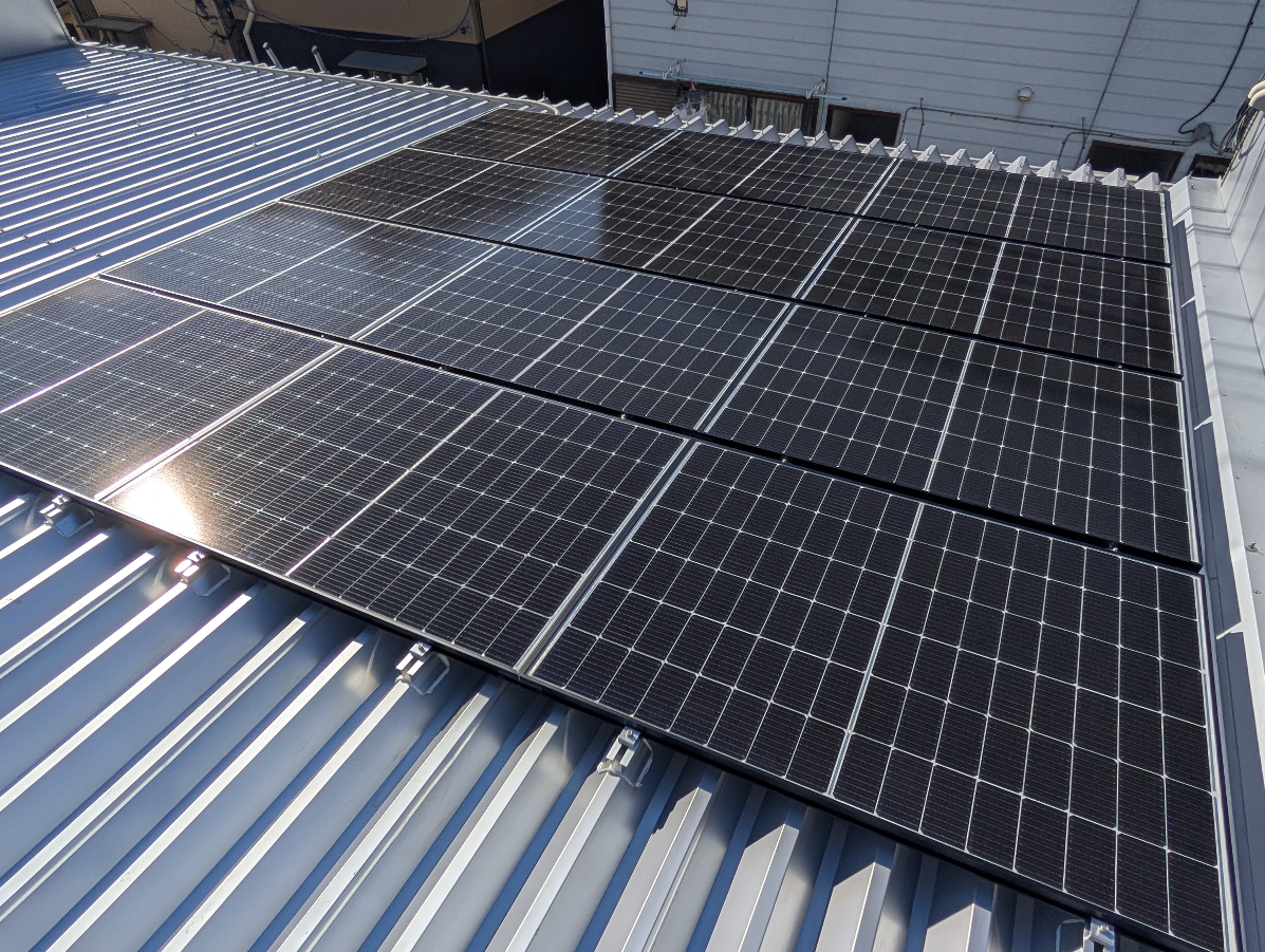 屋根上に自家消費型太陽光発電設備を設置し、発電した電力を供給することで、施設内の消費電力の一部として使用。